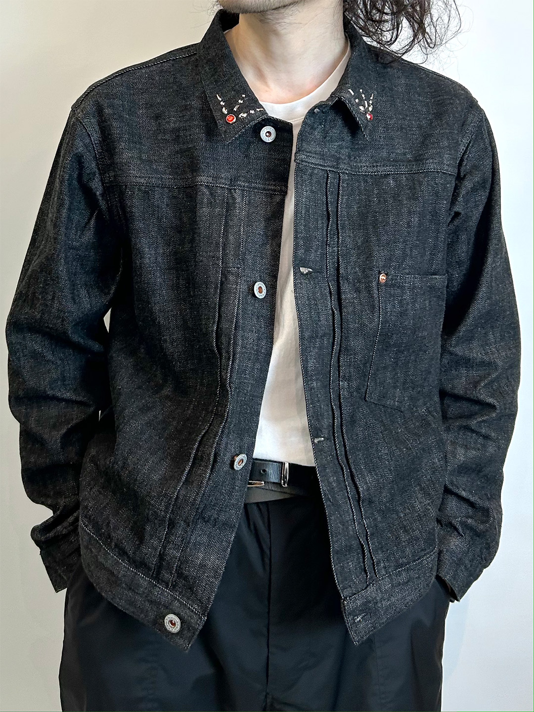 襟にのみスタッズを配置し、レイヤードスタイルのさらにアクセントとして使用して頂きたい”Type I ”