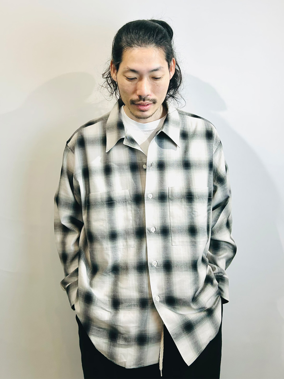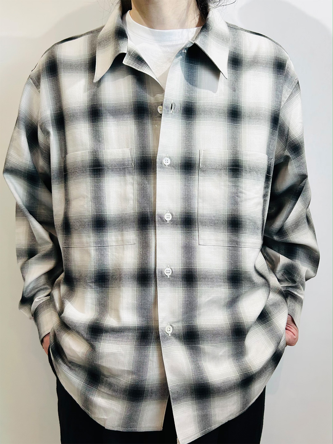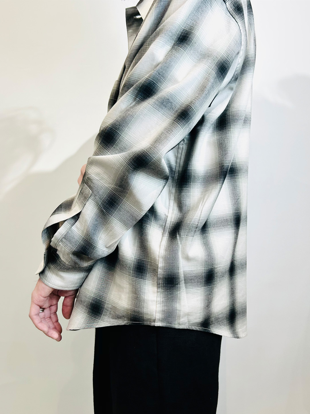 コットンレーヨンを使用し織られたオンブレーチェック地で製作したシャツです。