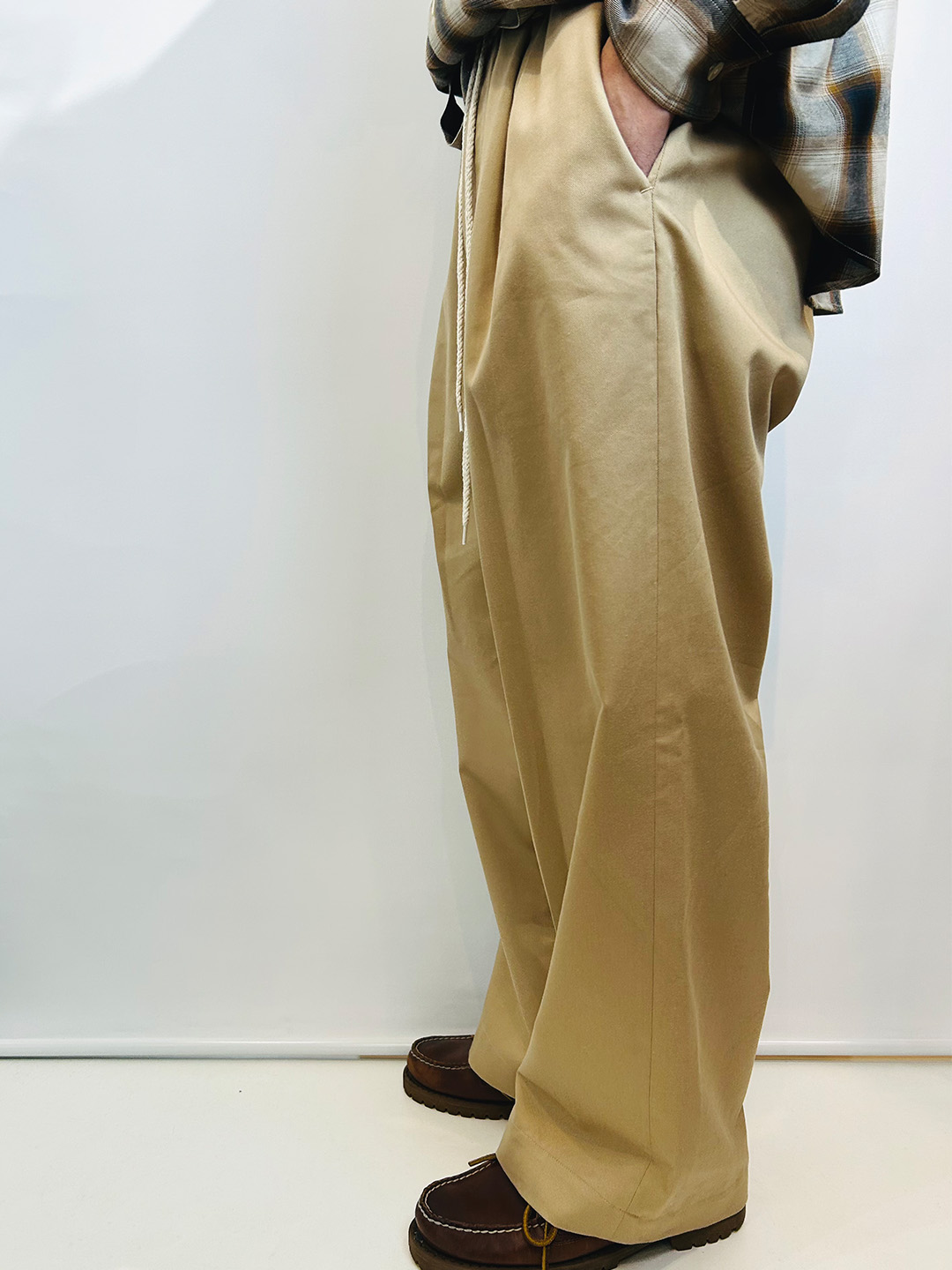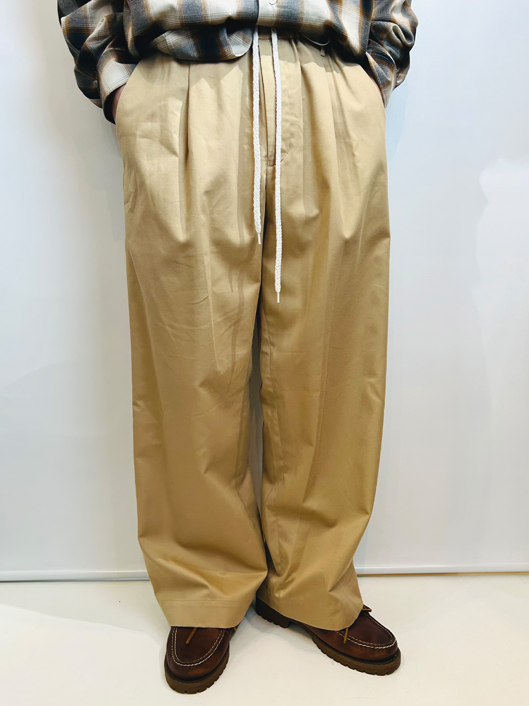 オーガニックコットンとリヨセルで織られたチノ素材を使用したワイドシルエットのイージーパンツです。