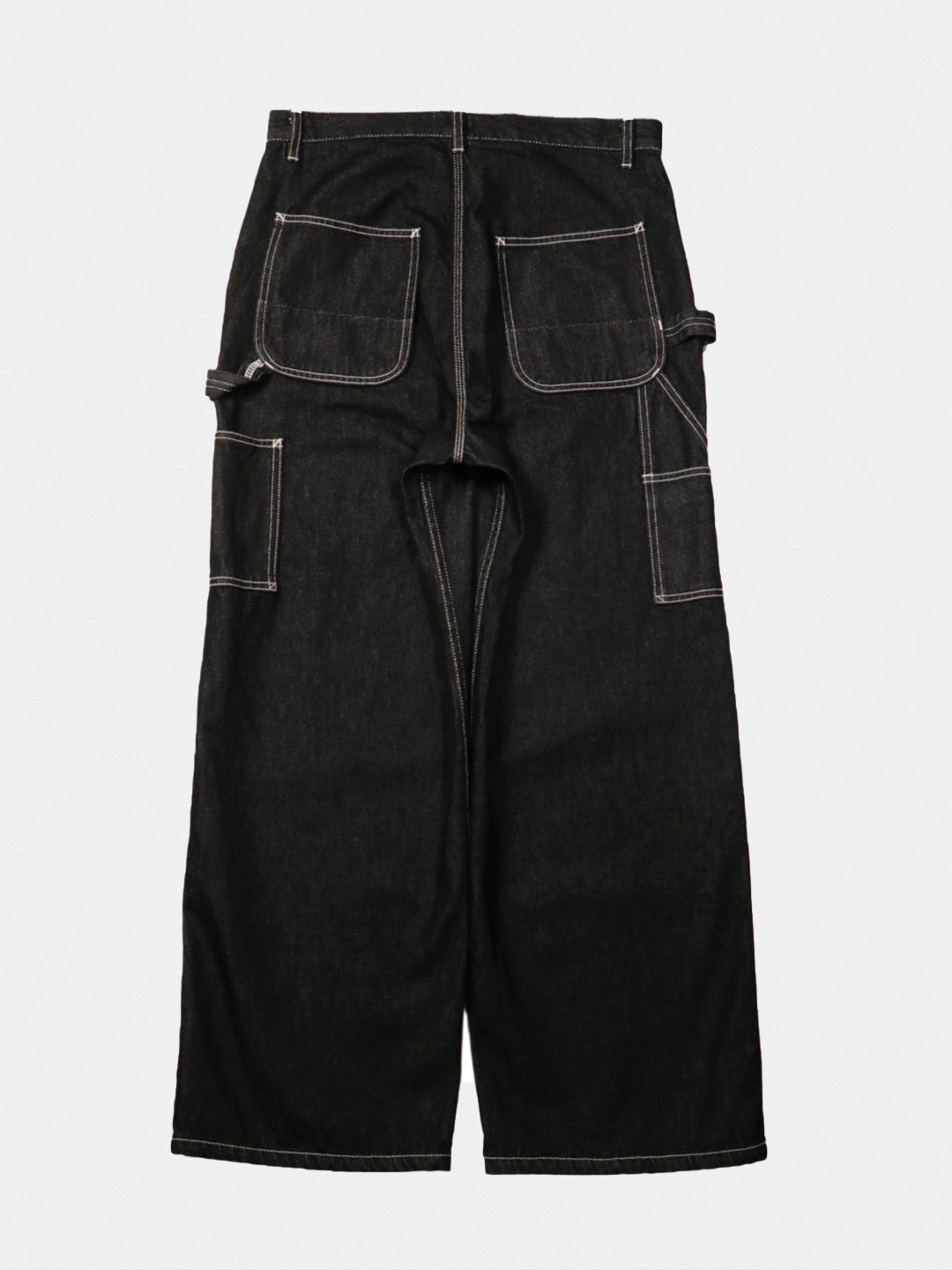 両脇にはハンマーループ、ポケットを取り付け、ペインターパンツのデザインを踏襲しつつ、リベットではなく閂で補強。