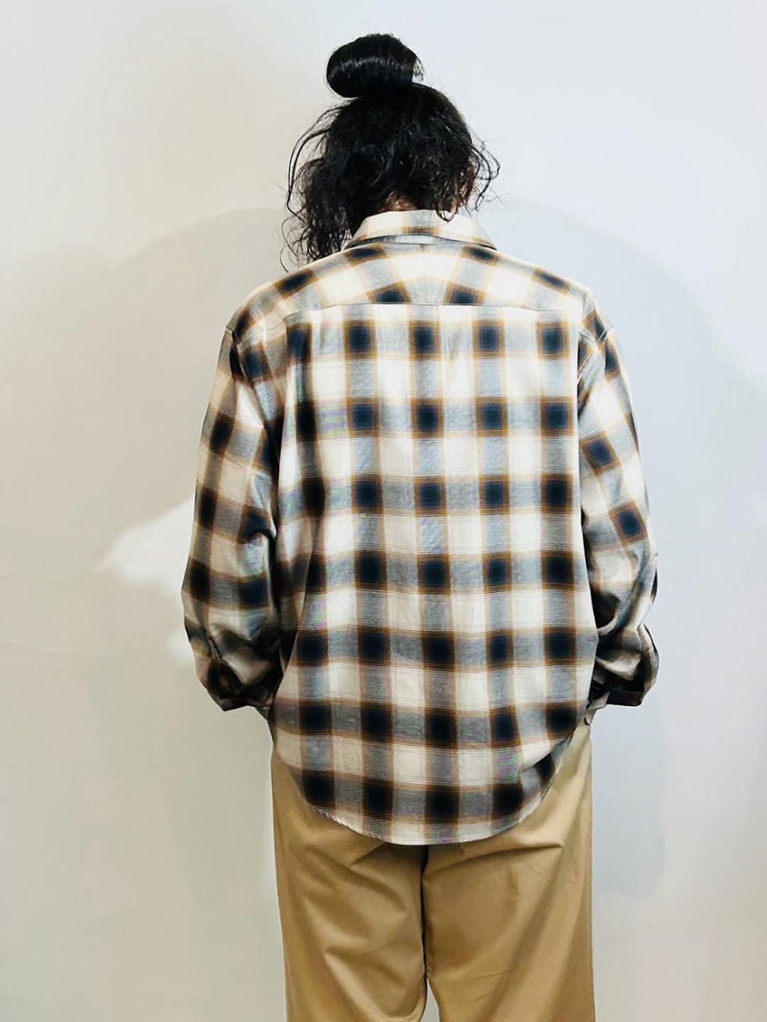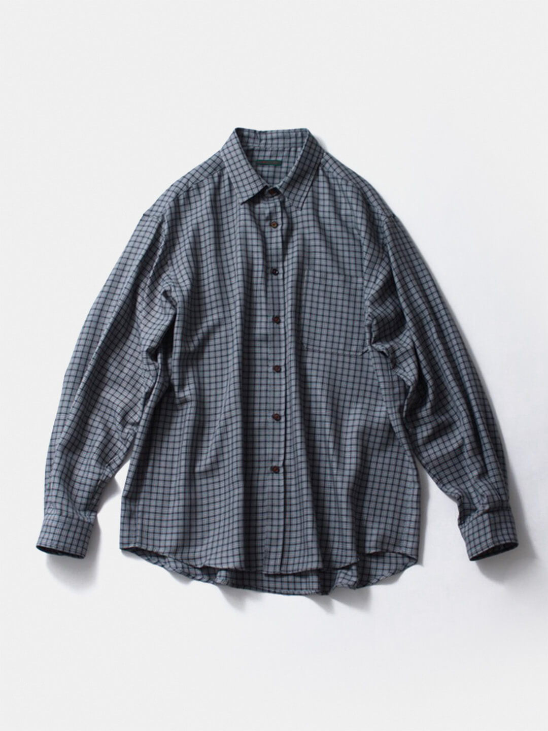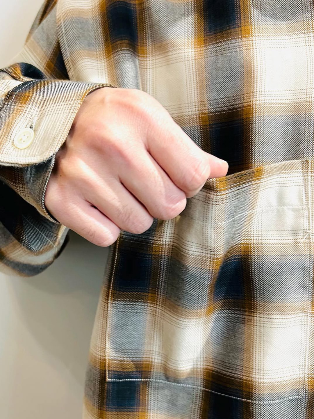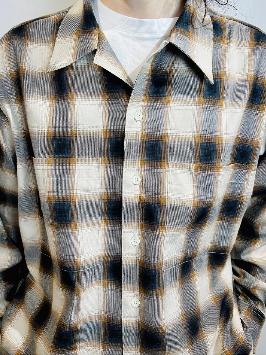 コットンレーヨンを使用し織られたオンブレーチェック地で製作したシャツです。