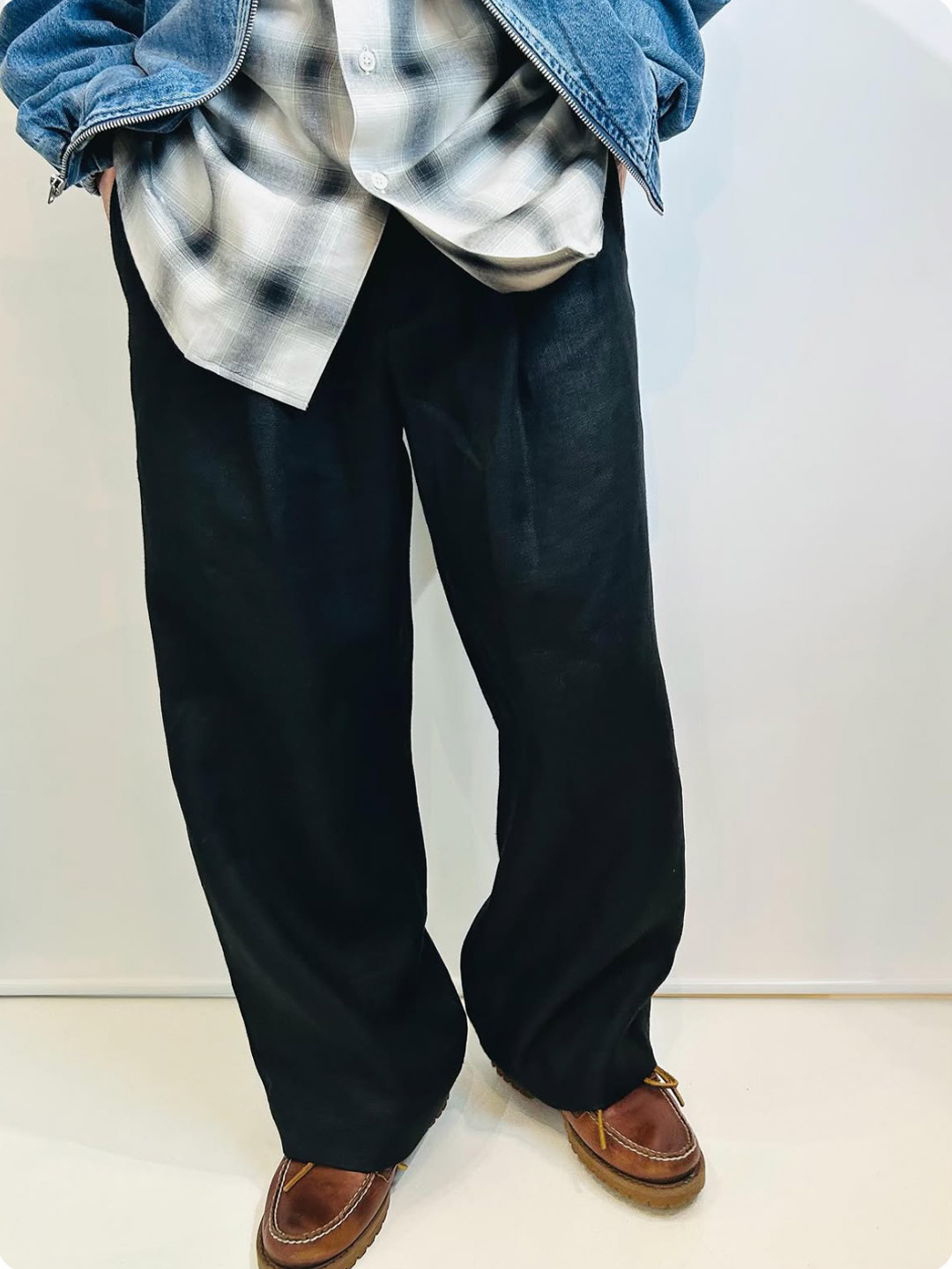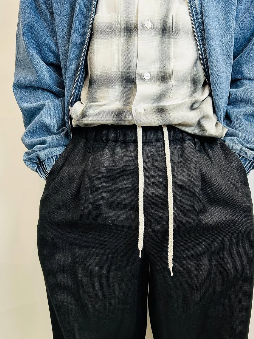 ワンタックを入れ腰回りはゆとりをもたせ、通気性も高く、夏にぜひご着用いただきたい、リラックスパンツに仕上がっています。