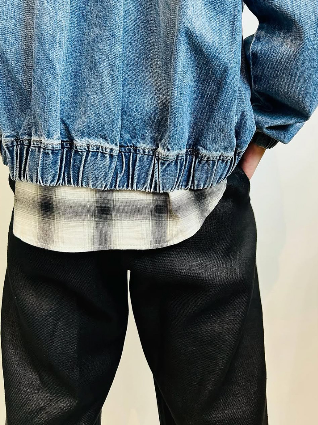 ウエストはゴム仕様で内側のスピンドルにて調節が可能、前開きはファスナー付き、ベルトループも付いており、ベルトの使用も可能です。